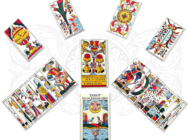 Besançon 1801, France Édition limitée à 1500 exemplaires de l’édition originale du tarot du maître cartier allemand Johan Jerger (il a en effet été réédité par...